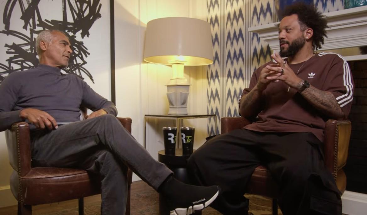 大家好,这里是Romário TV,今天节目我们请到一位超级重量级嘉宾——马塞洛。马塞洛-维埃拉,皇马传奇,巴西足球偶像,历史上最伟大的球员之一。在我心里,他是我见过的最强的五名边后卫之一。兄弟,感谢你的到来,很荣幸。