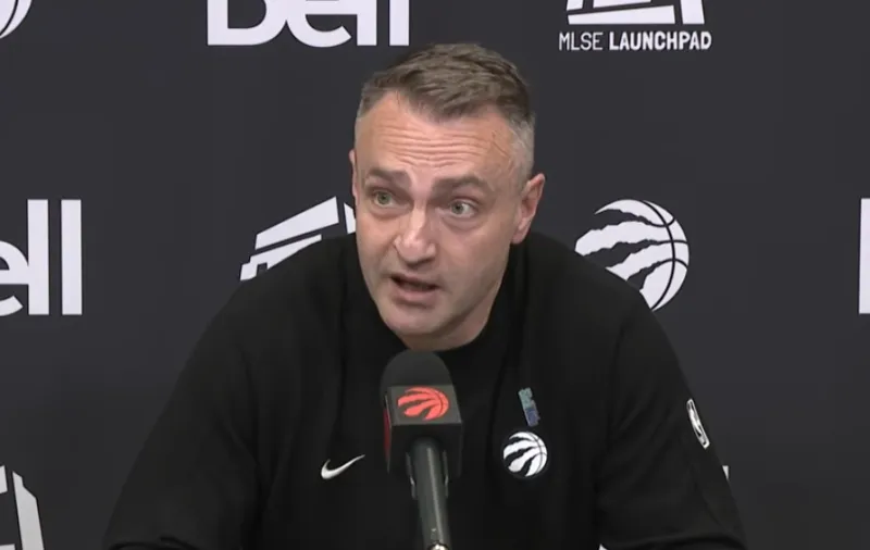 虎扑04月13日讯 今日NBA常规赛,多伦多猛龙以136-101的比分击败布鲁克林篮网。在赛后采访中,猛龙队教练达尔科-拉贾科维奇分享了球队锁定东部第五名的喜悦。拉贾科维奇表示,虽然球队从未设定具体的排名目标,但本赛季赢下46场比赛并看到球员们的显著成长令他深感自豪。他特别强调了球队内部的凝聚力和文化建设,认为从主力到双向合同球员都对球队的目标有极高的认同感。